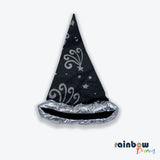 This extremely rare black wizard hat features a tall height with all over sliver glitter print