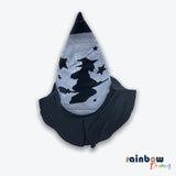 This extremely rare Wizard hat features a tall height with printed wizard on broom and stars